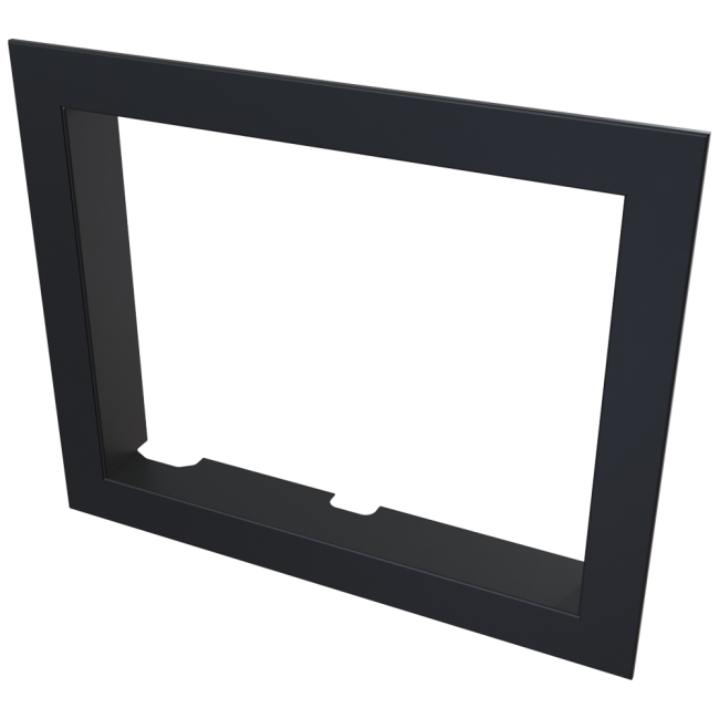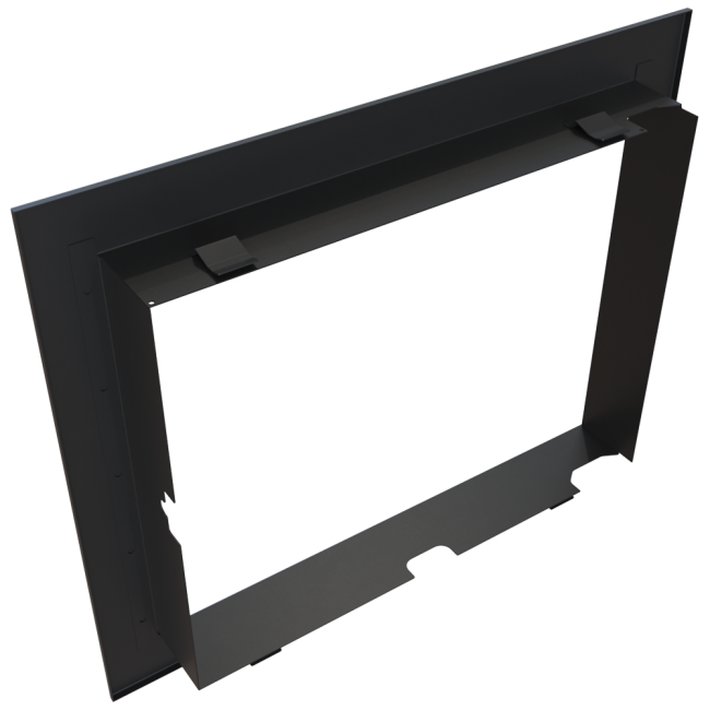 Nowoczesna stalowa ramka ozdobna do wkładu kominkowego powietrznego LUCY 12. Jej główną zaletą jest łatwy i szybki montaż. Instalację ramki można wykonać samemu.