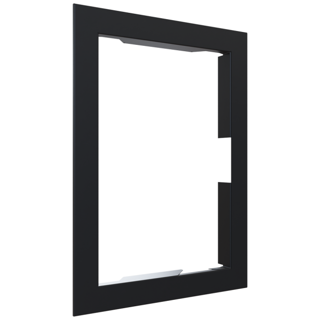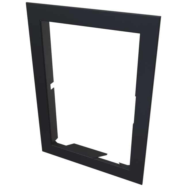 Nowoczesna stalowa ramka ozdobna do wkładu kominkowego powietrznego Nadia 9. Jej główną zaletą jest łatwy i szybki montaż. Instalację ramki można wykonać samemu.