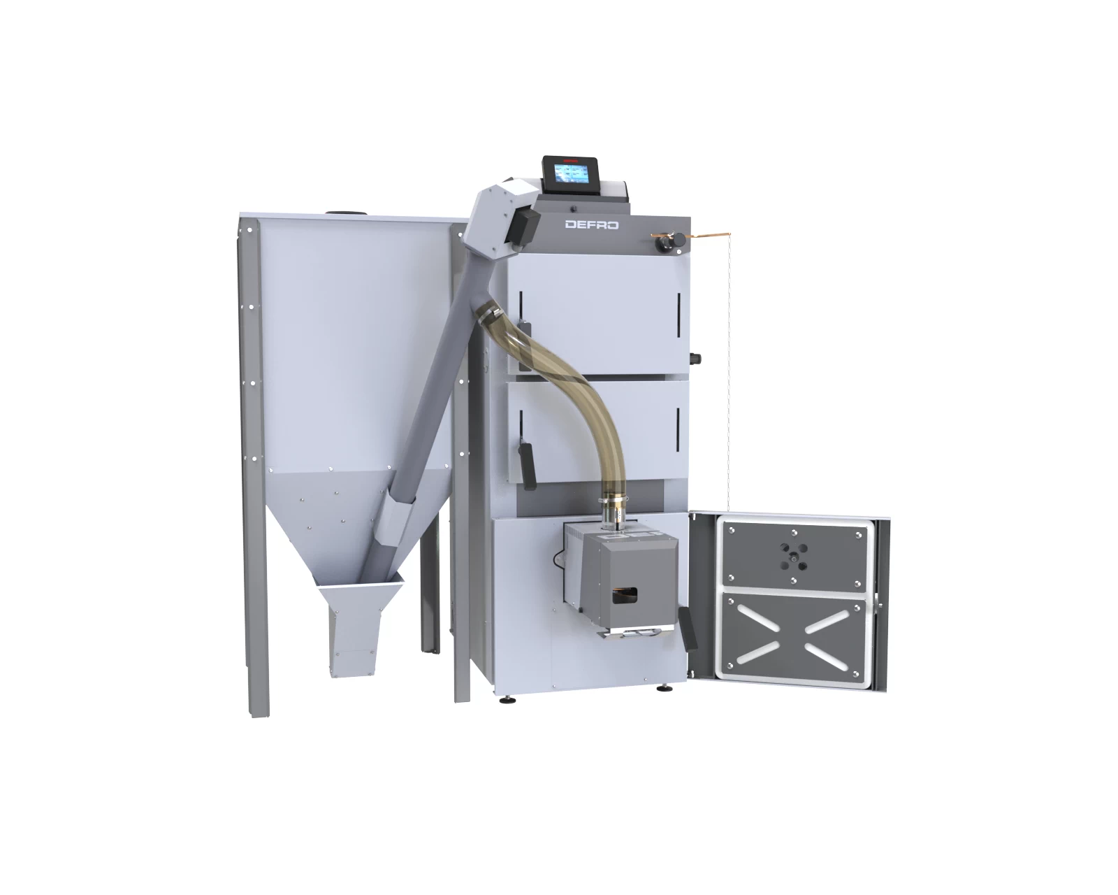 Kocioł jest wyposażony w palnik z automatycznym czyszczeniem w standardzie oraz sterownik APC K SLIM pozwalający na obsługę czterech pomp oraz jednego zaworu mieszającego. Dodatkową zaletą jest zbiornik zasypowy, który można ustawić z dowolnej strony – ułatwia to dopasowanie urządzenia do małych kotłowni.