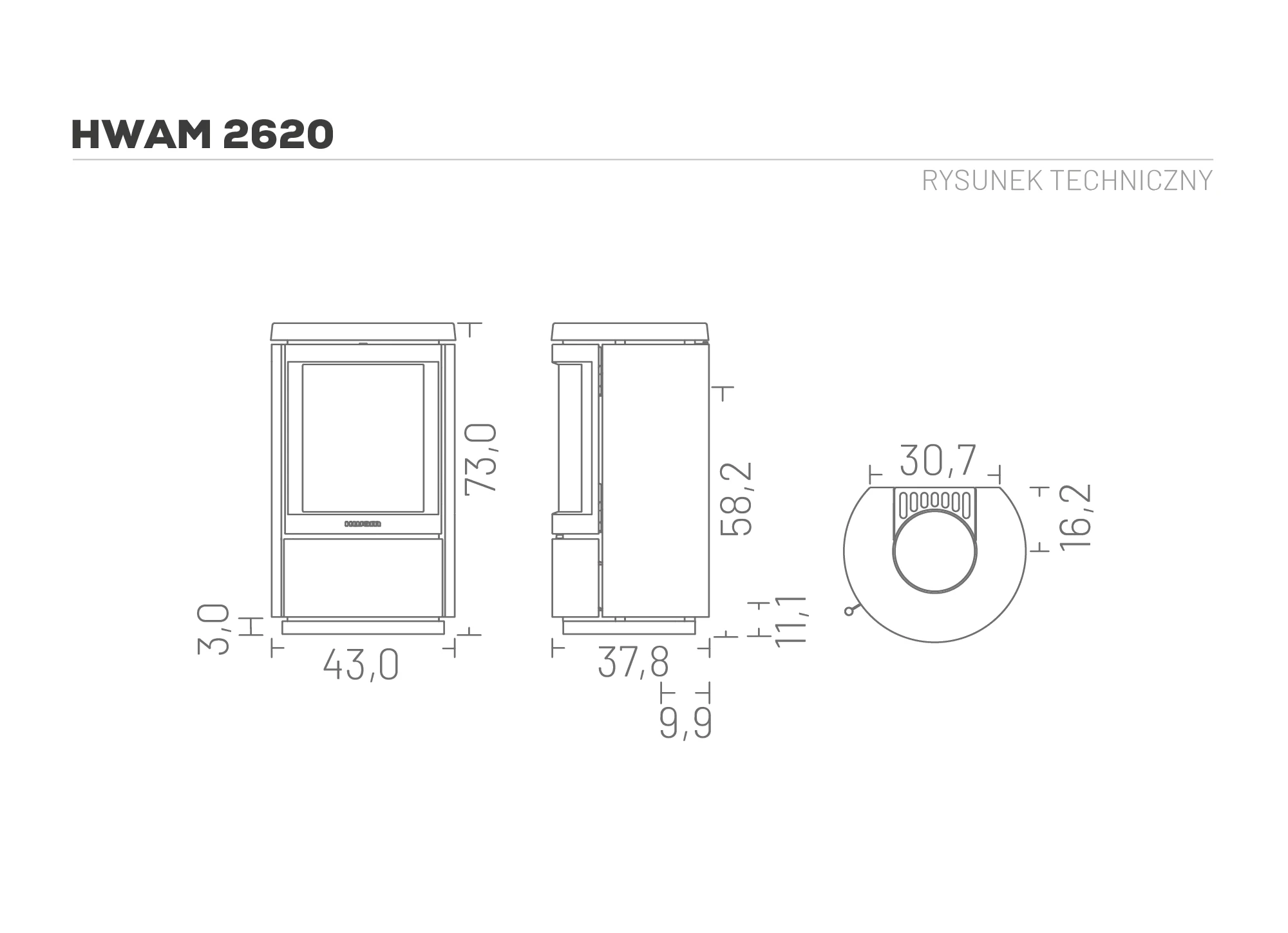 Wraz z serią HWAM 2600 duńscy projektanci Henrik Sørig i Tobias Jacobsen stworzyli kolejną piękną serię pieców, które są eleganckie, a jednocześnie niewielkie. System Airwash utrzymuje szybę w czystości i zapewnia, że fascynujący ogień można podziwiać przez nowoczesną, czernioną i półokrągłą szybę osadzoną w żeliwnych drzwiczkach.