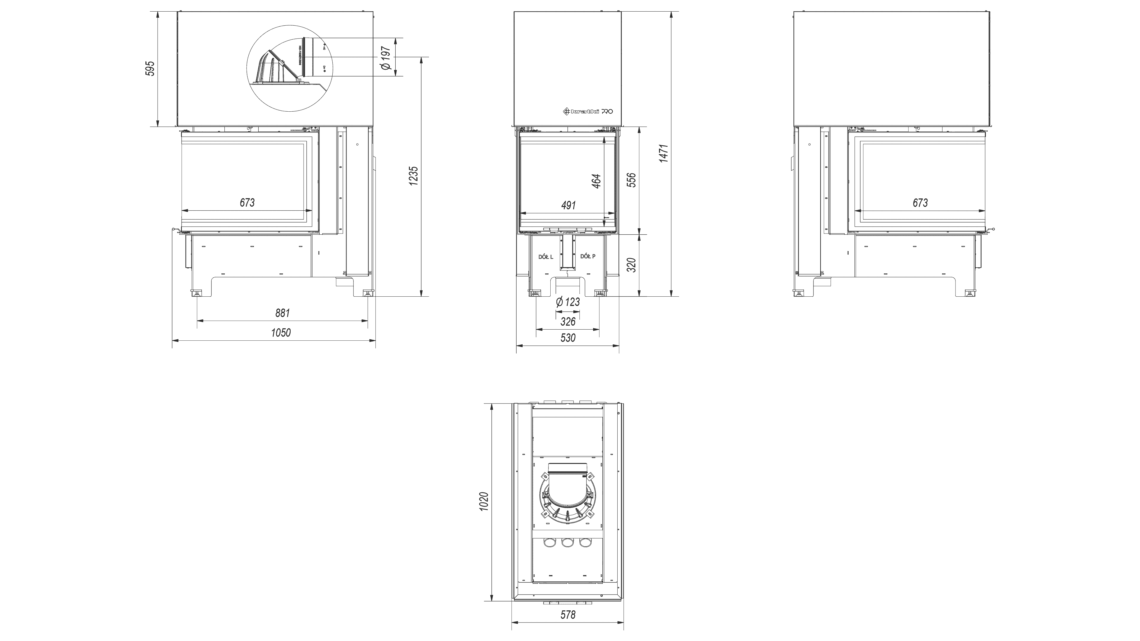 Inteligentny kominek NBU 500/700 11 kW Ø 200 Gilotyna czarne wyłożenie MSK GLASS