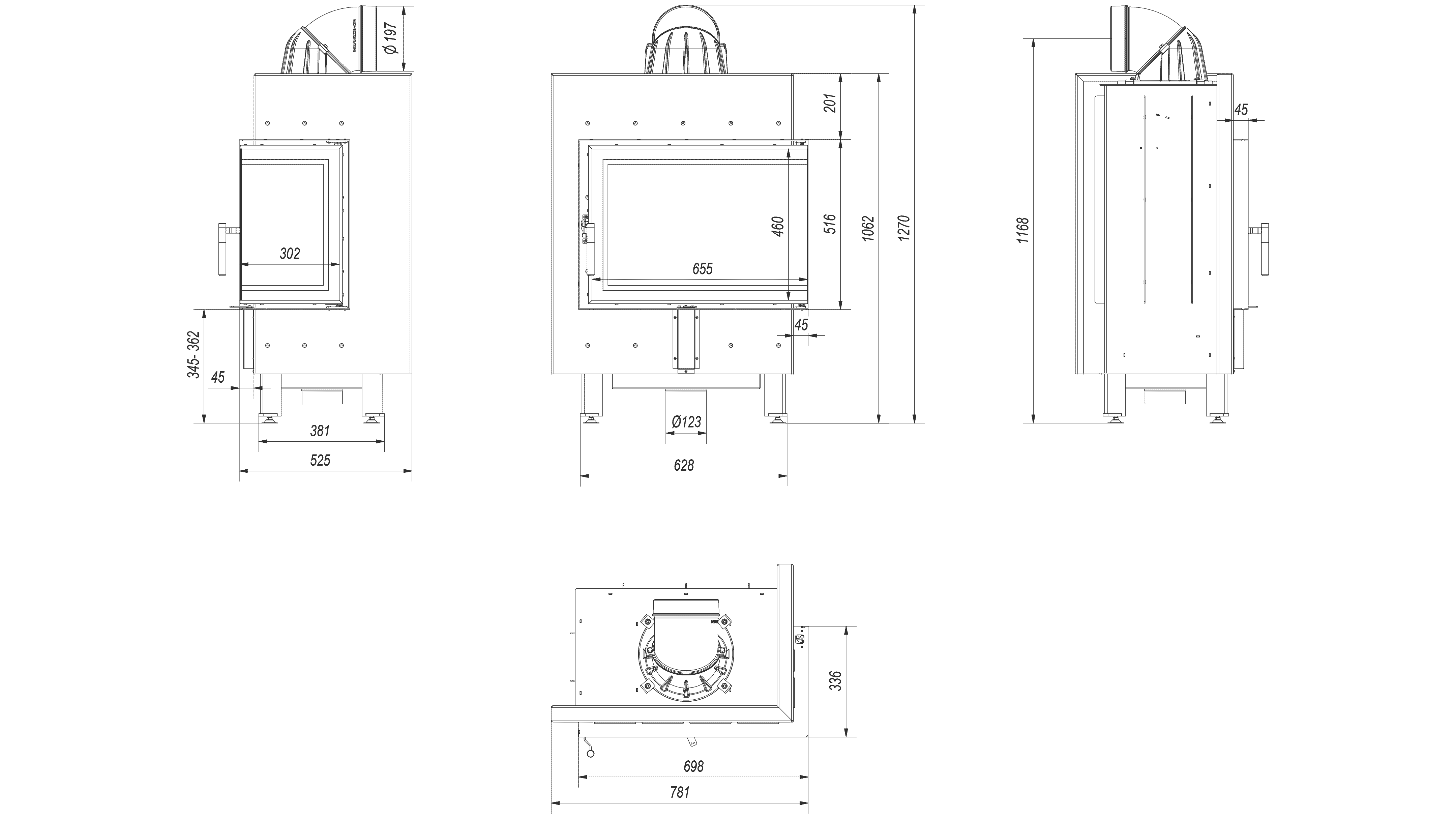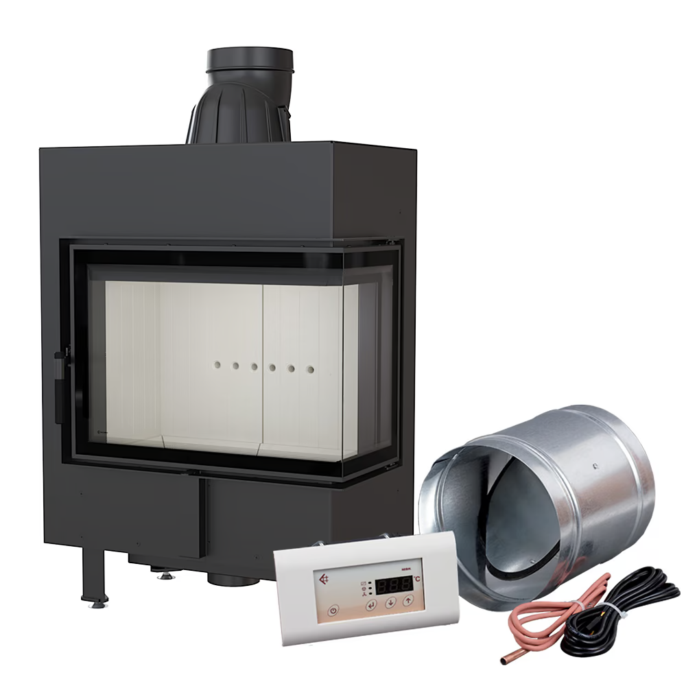 Inteligentny kominek powietrzny stalowy LUCY prawy BS 12 kW Ø 200 MSK