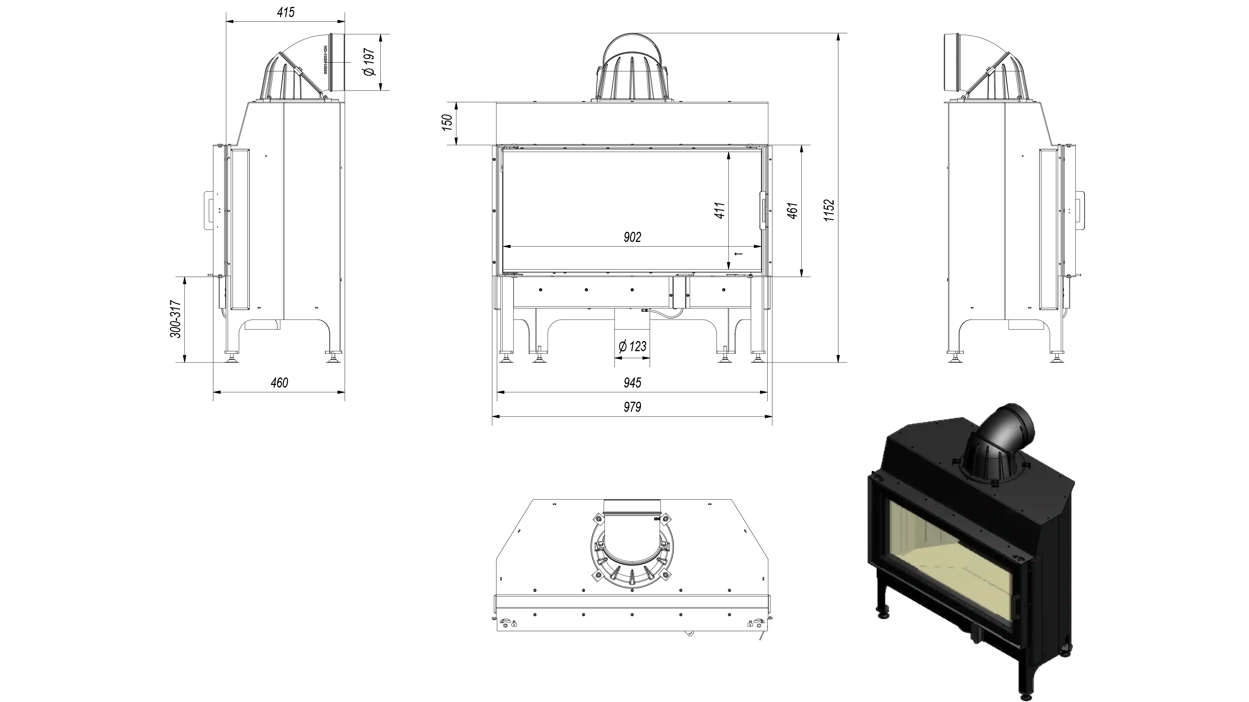 Wyposażony jest w dekoracyjną szybę typu glass, dzięki której wygląda elegancko i nowocześnie. Zastosowanie tego rozwiązania optycznie powiększa front wkładu i podkreśla wizję ognia.