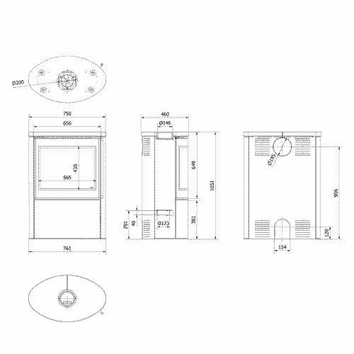- ułatwiony montaż pieca dzięki otworowi w podstawie - Ø200mm,