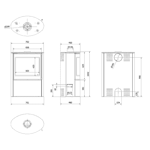 - ułatwiony montaż pieca dzięki otworowi w podstawie - Ø200mm,