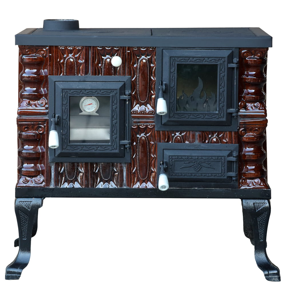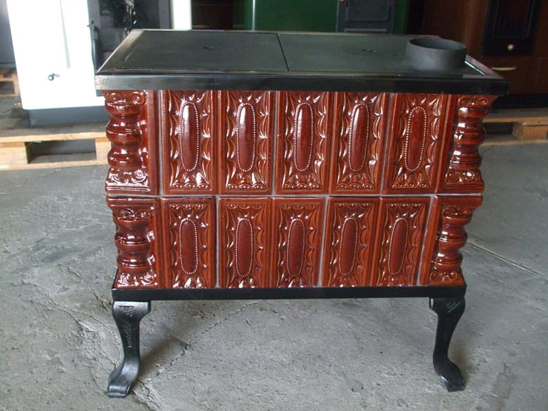 Kaflowa kuchnia węglowa 2K+S+S+Ż brąz lewa