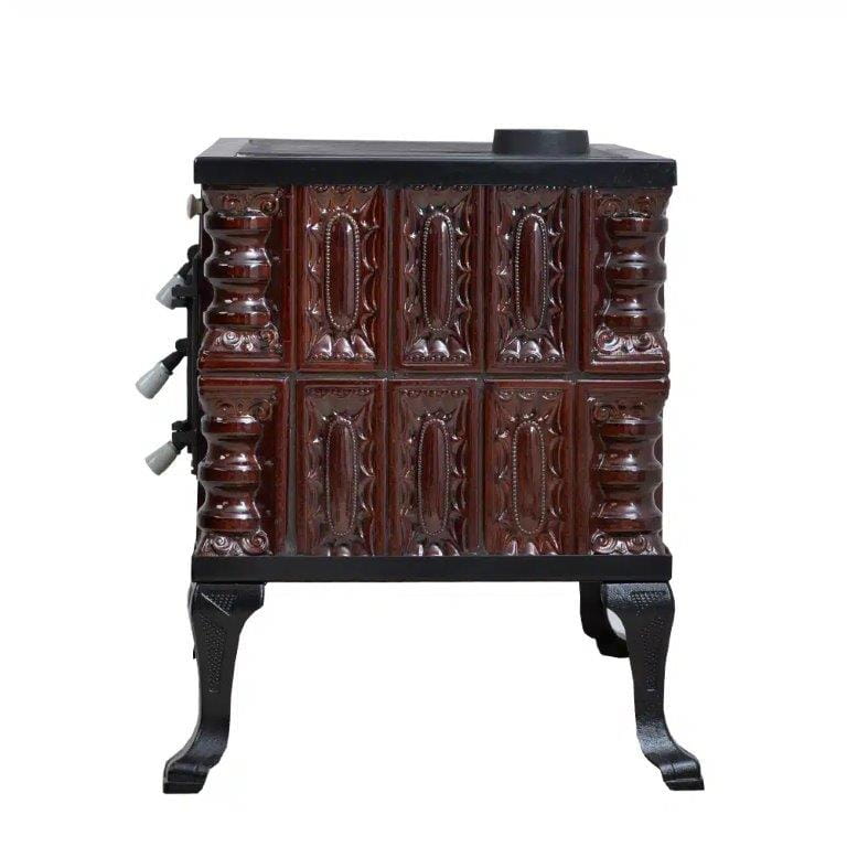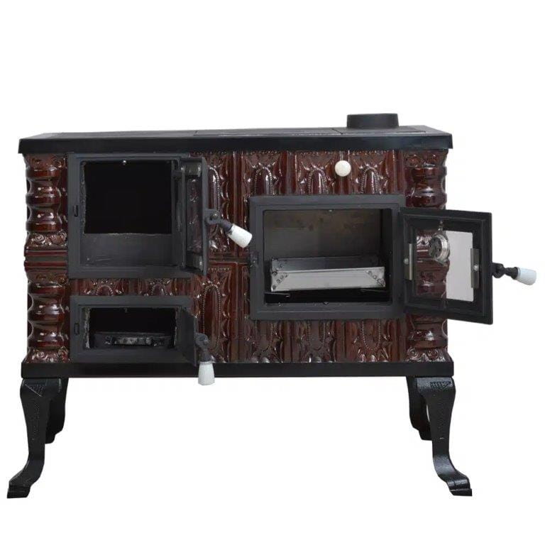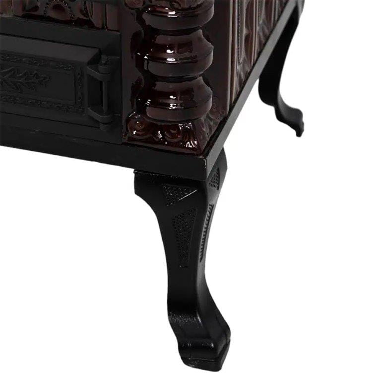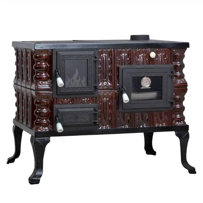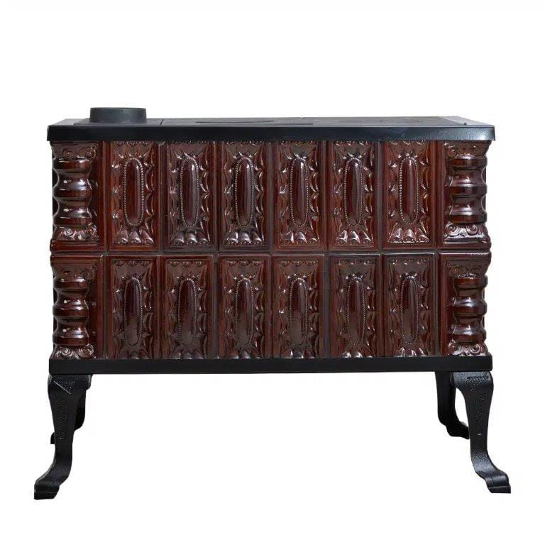 - ładny, estetyczny wygląd, typowy, klasyczny kształt – wykonana z kafli ceramicznych, kształtek szamotowych, żeliwne nóżki, żeliwne płyty grzewcze, szkło ceramiczne w drzwiczkach paleniska i piekarnika, dostępna w kolorze: brąz,