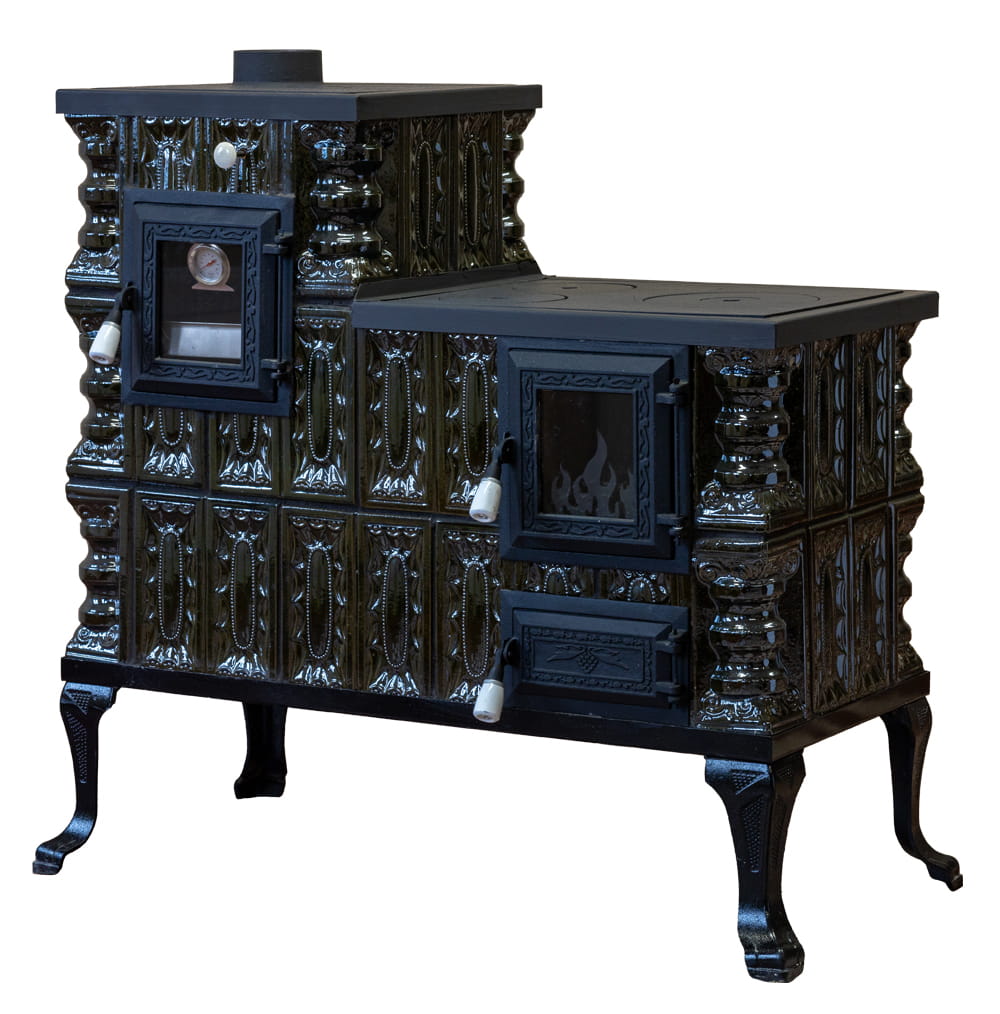 Kaflowa kuchnia węglowa 3/2K+S+S+Ż zielona lewa