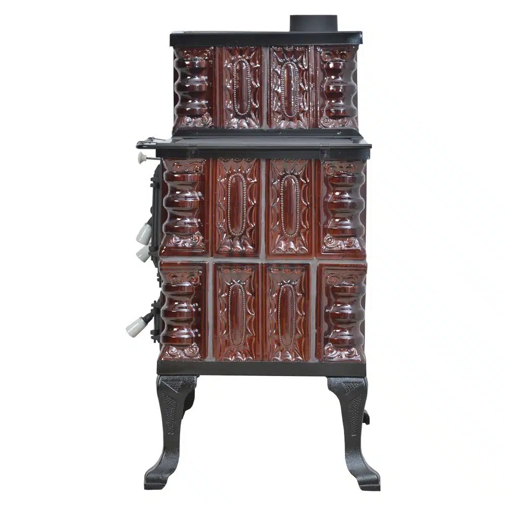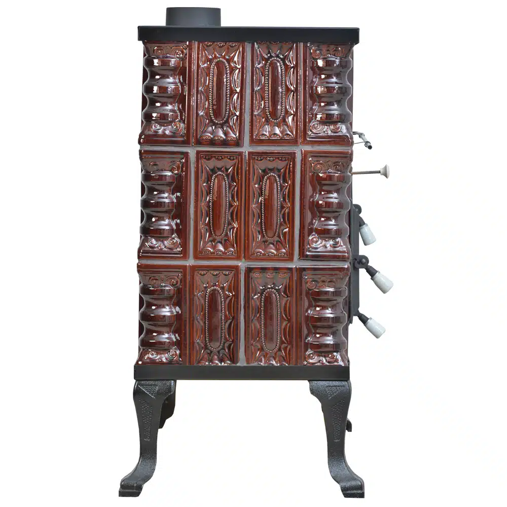 Kaflowa kuchnia węglowa 3/2K+S+S+ŻM brązowa lewa