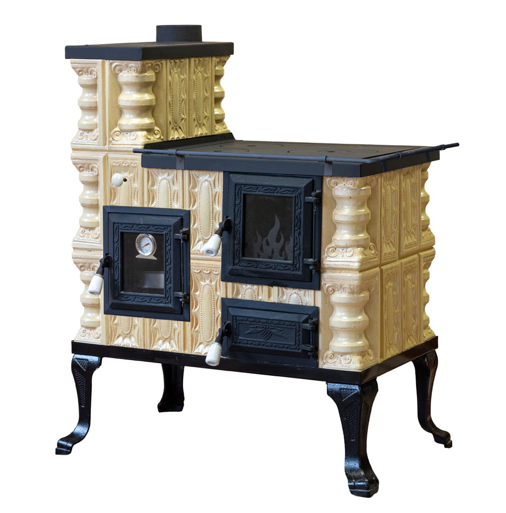Kaflowa kuchnia węglowa 3/2K+S+S+ŻM kremowa lewa