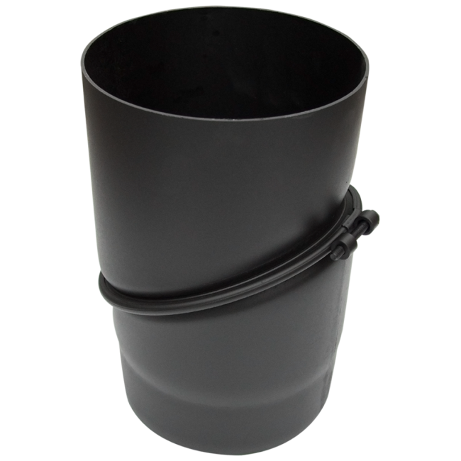 Kolanko nastawne do kąta 45°, 2-segmentowe przeznaczone do podłączania wkładów kominkowych opalanych drewnem do istniejących przewodów kominowych.
