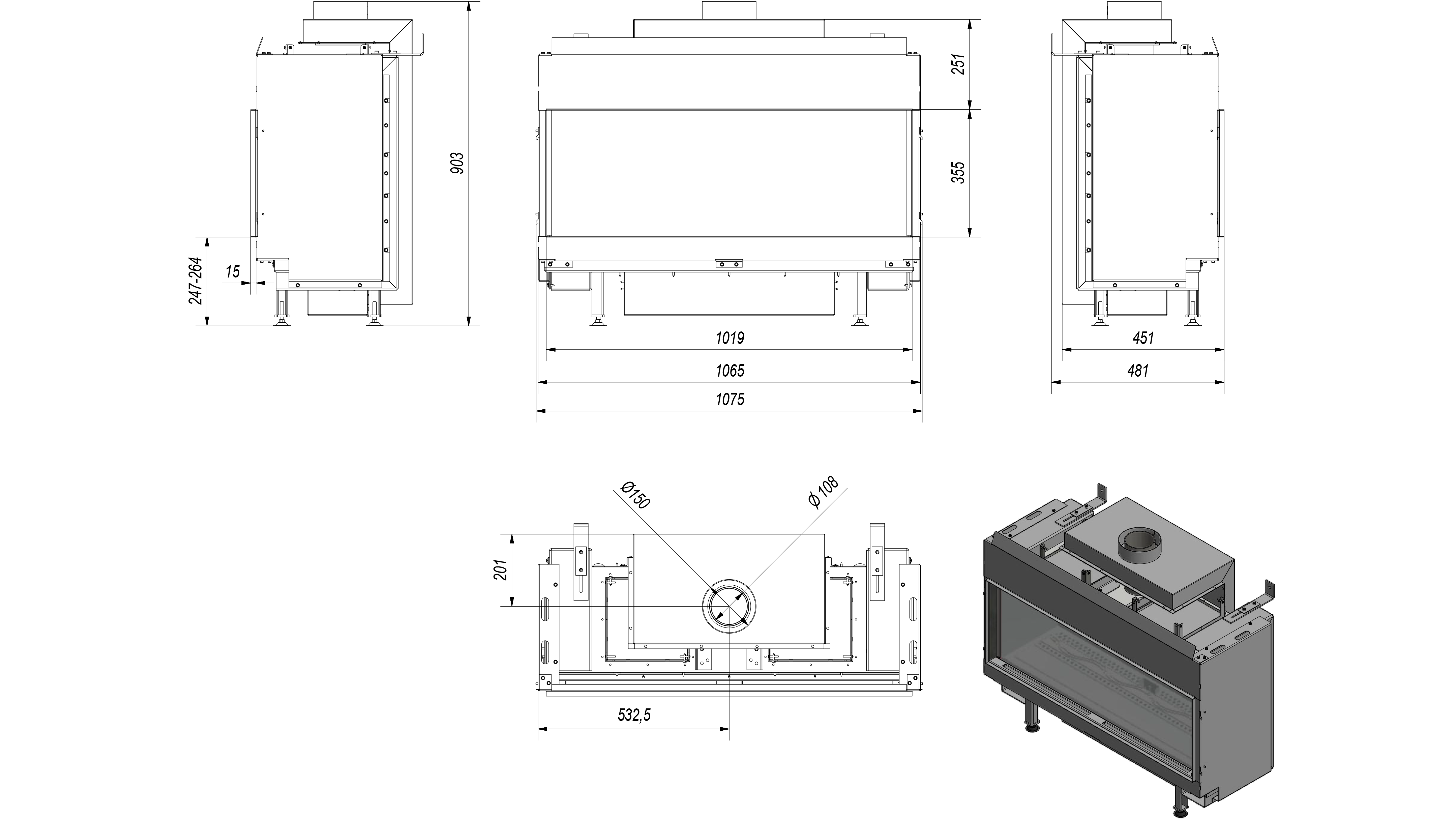 Hermetycznie zamknięta komora spalania, która daje najwyższy stopień bezpieczeństwa; przy jakichkolwiek problemach z drożnością przewodu powietrzno-spalinowego lub dopływu gazu kominek jest automatycznie wyłączany.