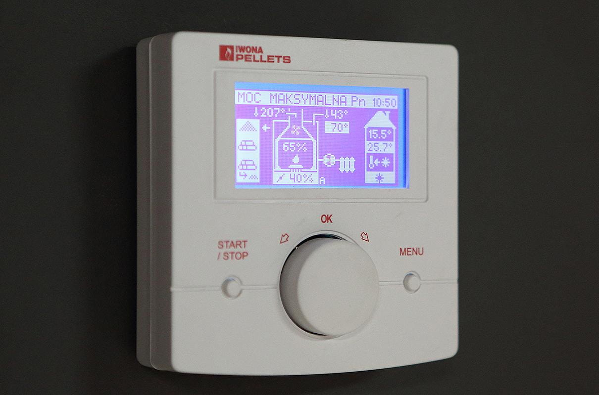 Całym procesem ogrzewania naszego domu steruje zaawansowany i zarazem prosty w obsłudze sterownik z wyświetlaczem sterowany za pomocą panelu sterownia lub jako opcja za pomocą internetu lub telefonu. Wszystkie elementy zastosowane w naszych kominkach czynią je w pełni automatyczne a ich obsługa ogranicza się do wsypania pelletu do zasobnika oraz wciśnięcia przycisku włącz. W prosty sposób możemy ustawić zadaną temperaturę pokojową, a sterownik sam dobierze ilość podawanego pelletu aby tę temperaturę precyzyjnie utrzymywać.