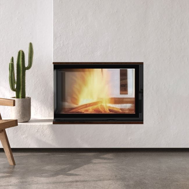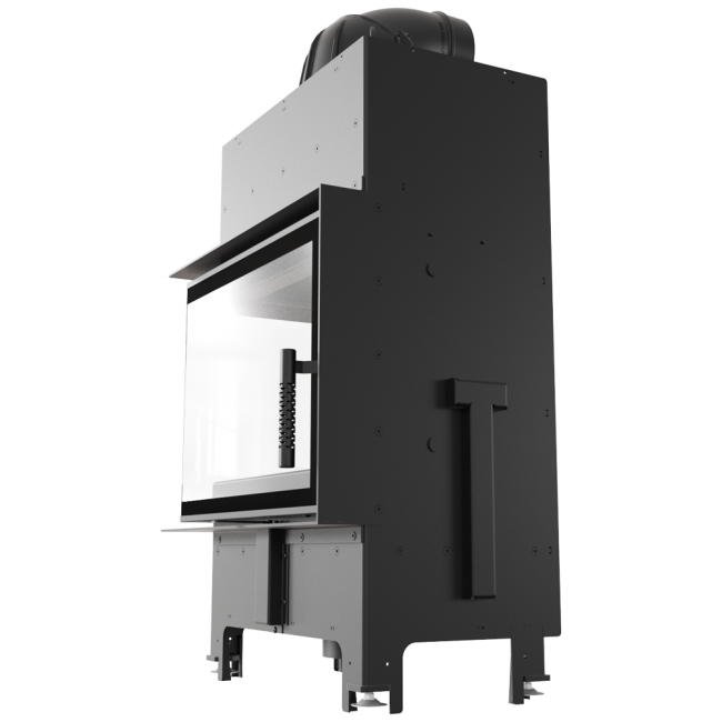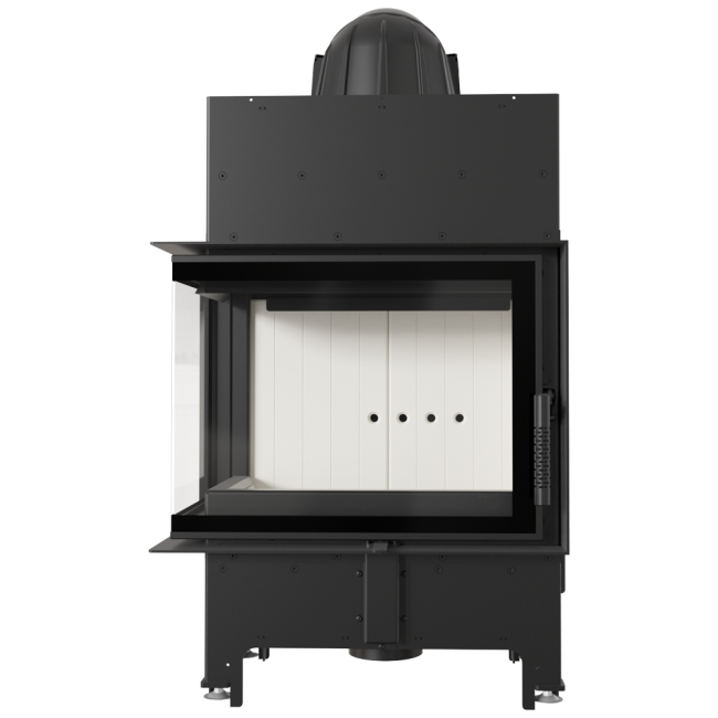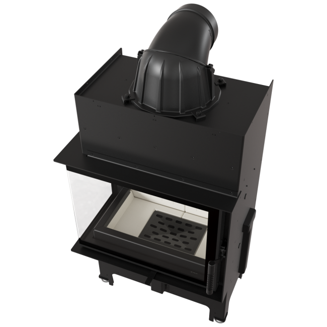 Wkład o ciekawym kształcie, z bocznym przeszkleniem. Dzięki dwustronnej wizji ognia i delikatnej ramie frontowej doskonale wpisuje się w stylistykę nowoczesnych wnętrz. Tego typu kominek jest często wybierany w przypadku otwartych pomieszczeń, w których łączone są różne przestrzenie, np. salon z jadalnią. Zastosowana w kominku specjalnie profilowana płyta dolna sprawia, że mieści on w sobie większą ilość drewna. Nowoczesne rozwiązania zastosowane w urządzeniu gwarantują oszczędność energii i sprawiają, że jego obsługa i czyszczenie są bezproblemowe.