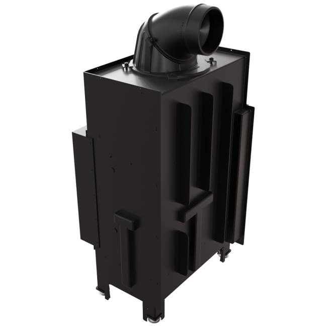 Dodatkowo we wkładzie zastosowany jest system czystej szyby (kurtyna powietrza), czyli powietrze dostarczane jest bezpośrednio na szybę poprzez system kanałów umieszczonych na bokach kominka. W ten sposób dostarczany jest tlen do górnej części komory spalania, w której następuje dopalanie gazów powstałych w procesie spalania drewna, co dodatkowo ogranicza emisję szkodliwego CO do atmosfery.