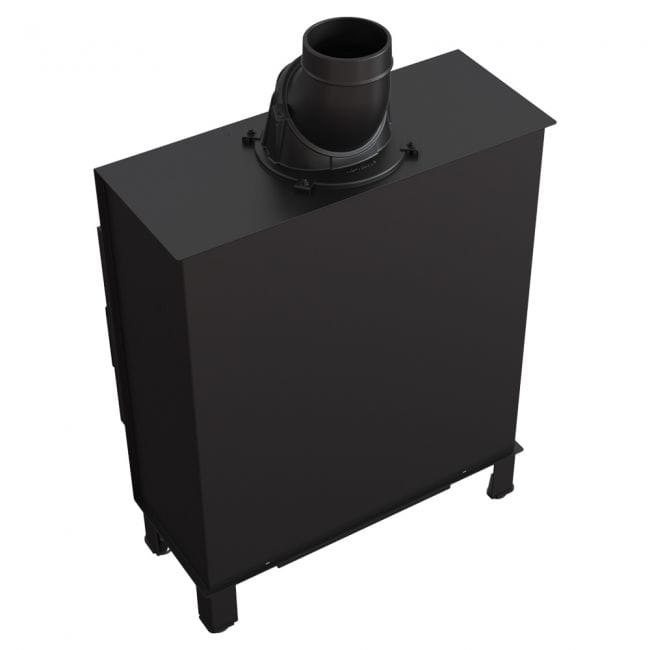 W kominku zastosowano specjalnie profilowaną płytę dolną wykonaną z Temotec, dzięki czemu komora spalania jest głębsza i mieści większą ilość drewna. Jednocześnie zastosowano skróconą komorę paleniska, co wpływa na mniejszą moc wkładu. Dzięki temu doskonale sprawdzi się on w salonach o niewielkich gabarytach.