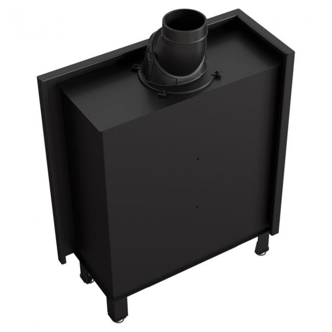 Dodatkowo we wkładzie zastosowany jest system czystej szyby (kurtyna powietrza), czyli powietrze dostarczane jest bezpośrednio na szybę poprzez system kanałów umieszczonych na bokach kominka. W ten sposób dostarczany jest tlen do górnej części komory spalania, w której następuje dopalanie gazów powstałych w procesie spalania drewna, co dodatkowo ogranicza emisję szkodliwego CO do atmosfery.