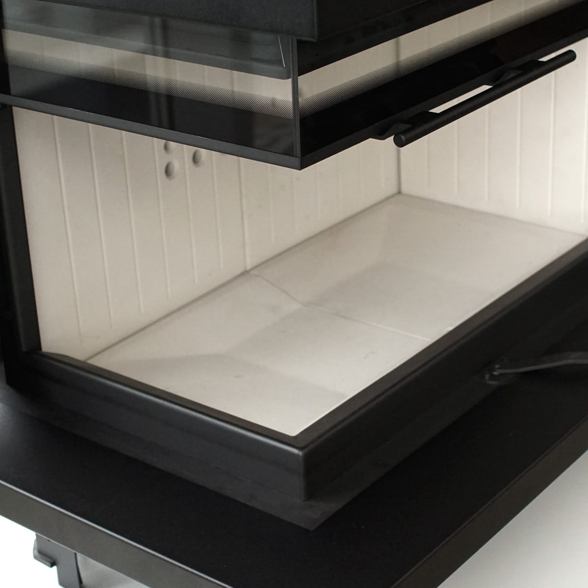 Dzięki podnoszonym i opuszczanym drzwiom jednorazowo można załadować odpowiednią ilość drewna. Dodatkowy mechanizm, umożliwiający boczne otwarcie szyb, co ułatwia ich czyszczenie oraz utrzymanie czystości paleniska.