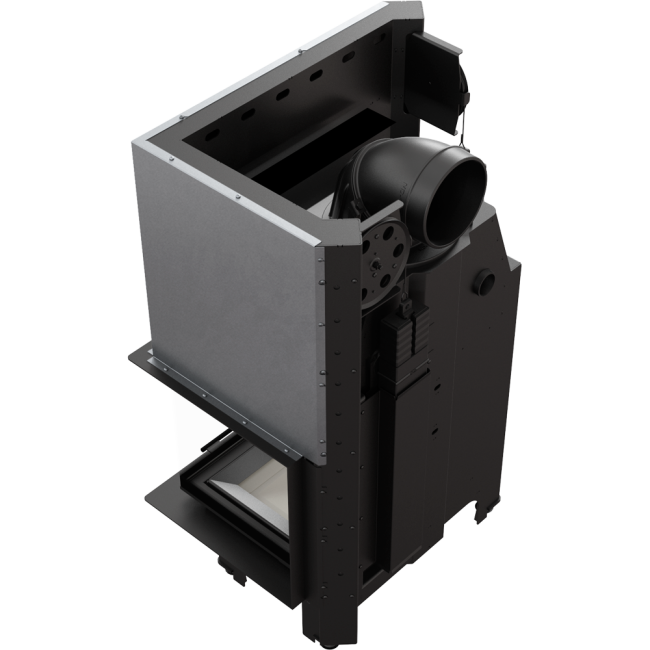 Potrójny system dopowietrzenia komory spalania: powietrze pierwotne - skierowane jest na płytę, na której odbywa się spalanie; powietrze wtórne dostarczane jest otworami w tylnej ścianie. Dodatkowo we wkładzie zastosowany jest system czystej szyby (kurtyna powietrza).