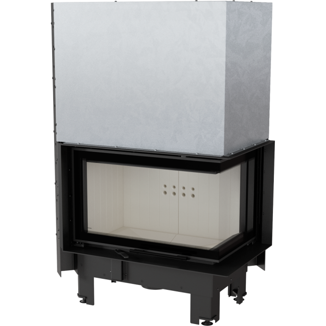 Wkład kominkowy z dwoma szybami zestawionymi ze sobą pod kątem prostym (szyby łączone bez szprosa).