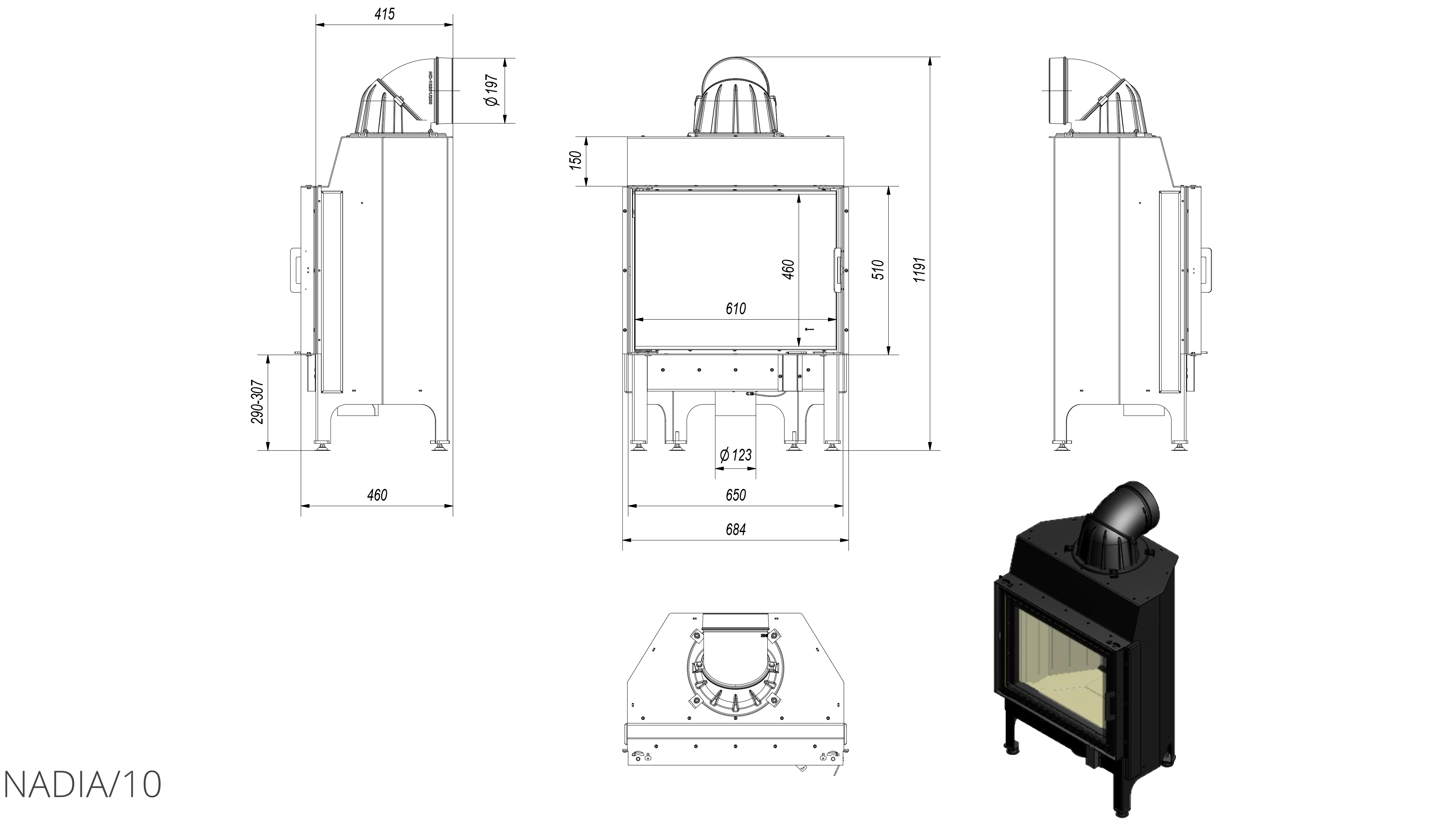 KOMINEK POWIETRZNY STALOWY NADIA 10 KW Ø 200 BLACK