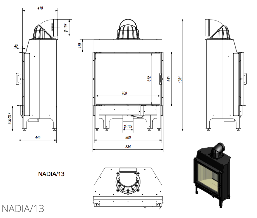 KOMINEK POWIETRZNY STALOWY NADIA 13 KW Ø 200 PODWÓJNA SZYBA