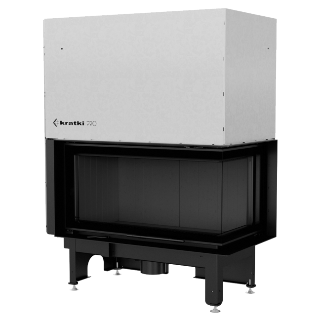 Wkład kominkowy z dwoma szybami zestawionymi ze sobą pod kątem prostym (szyby łączone bez szprosa).