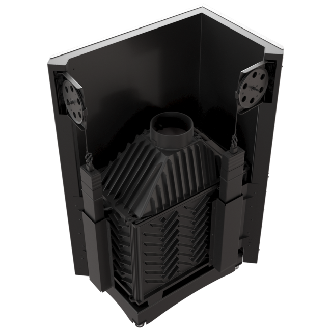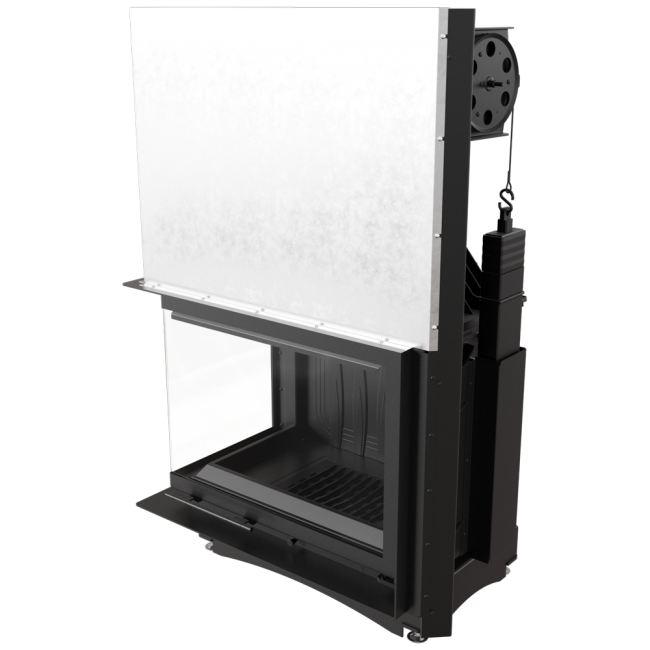 Podwójny system otwierania drzwi do góry (GILOTYNA) i do boku. Podnoszone i opuszczane drzwi ułatwiają załadunek drewna, a mechanizm umożliwiający boczne otwarcie pozwoli na sprawniejsze czyszczenie szyby.