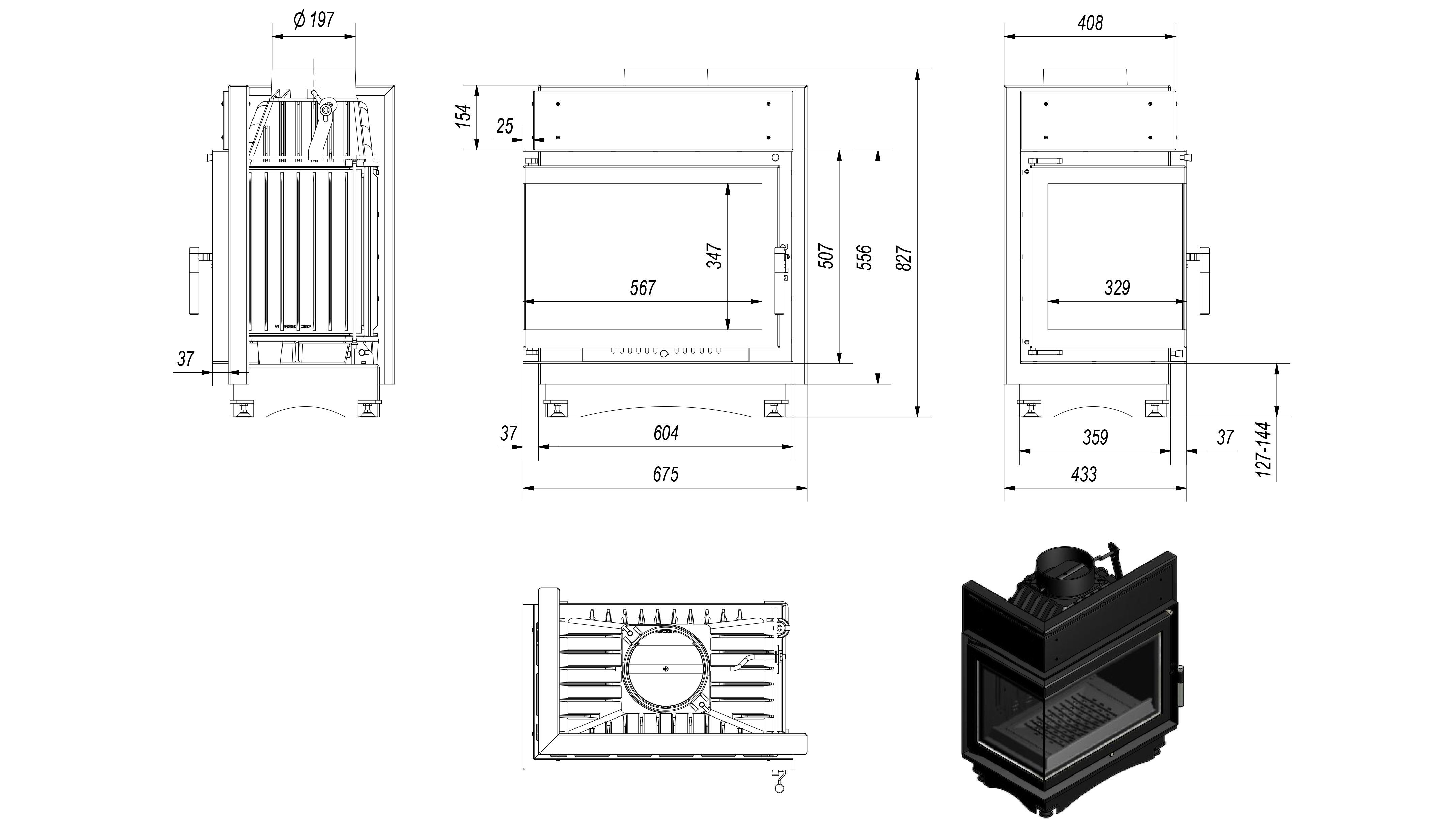 KOMINEK POWIETRZNY ŻELIWNY MAJA LEWY BS 8 KW Ø 200