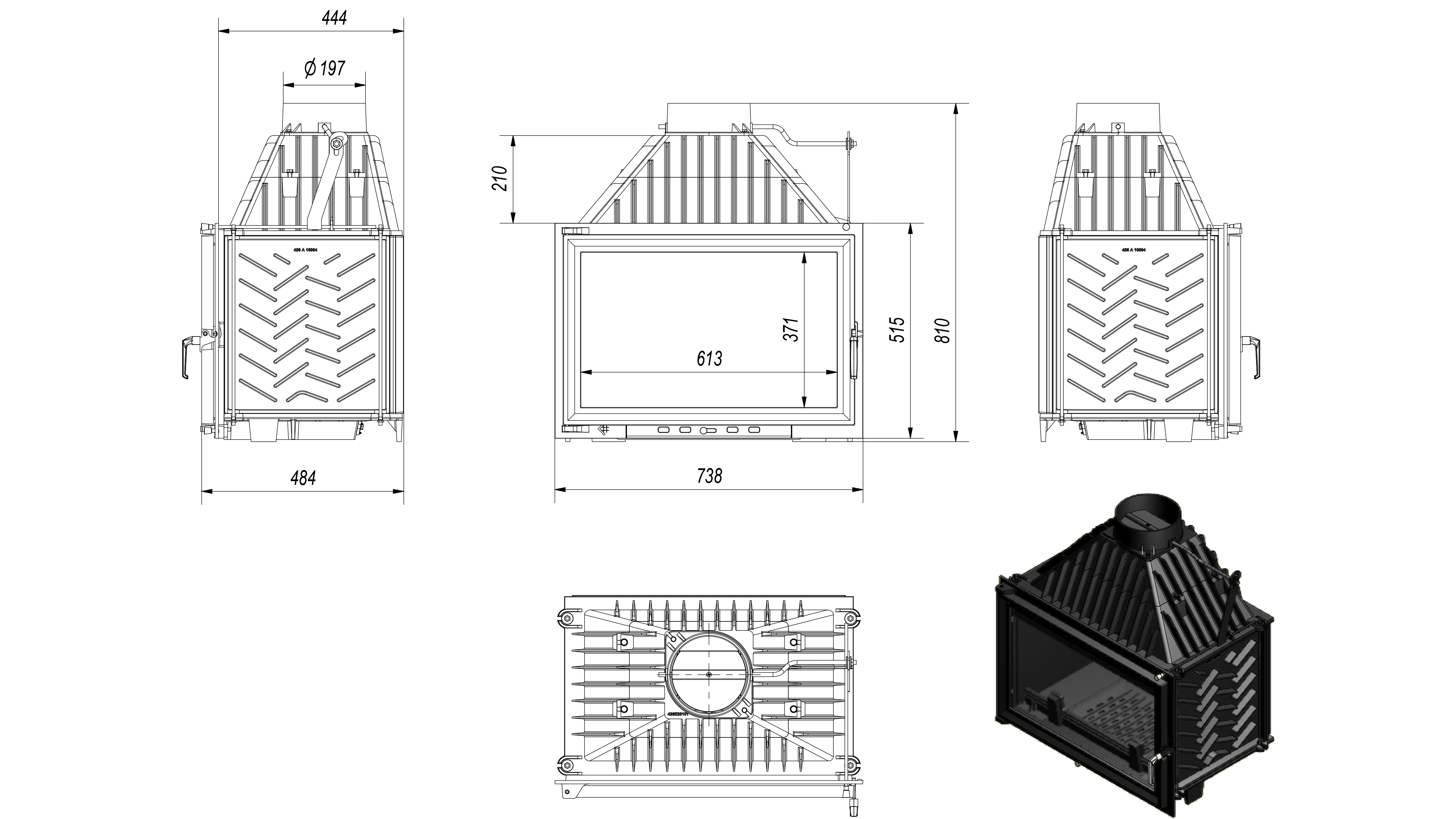 Klasyczny front wkładu wyposażony w ceramikę żaroodporną wytrzymująca temperaturę do 660°C.