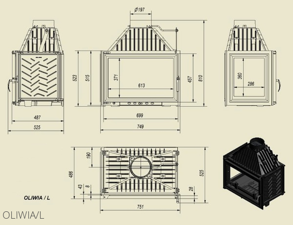 KOMINEK POWIETRZNY ŻELIWNY OLIWIA LEWY 16 KW Ø 200