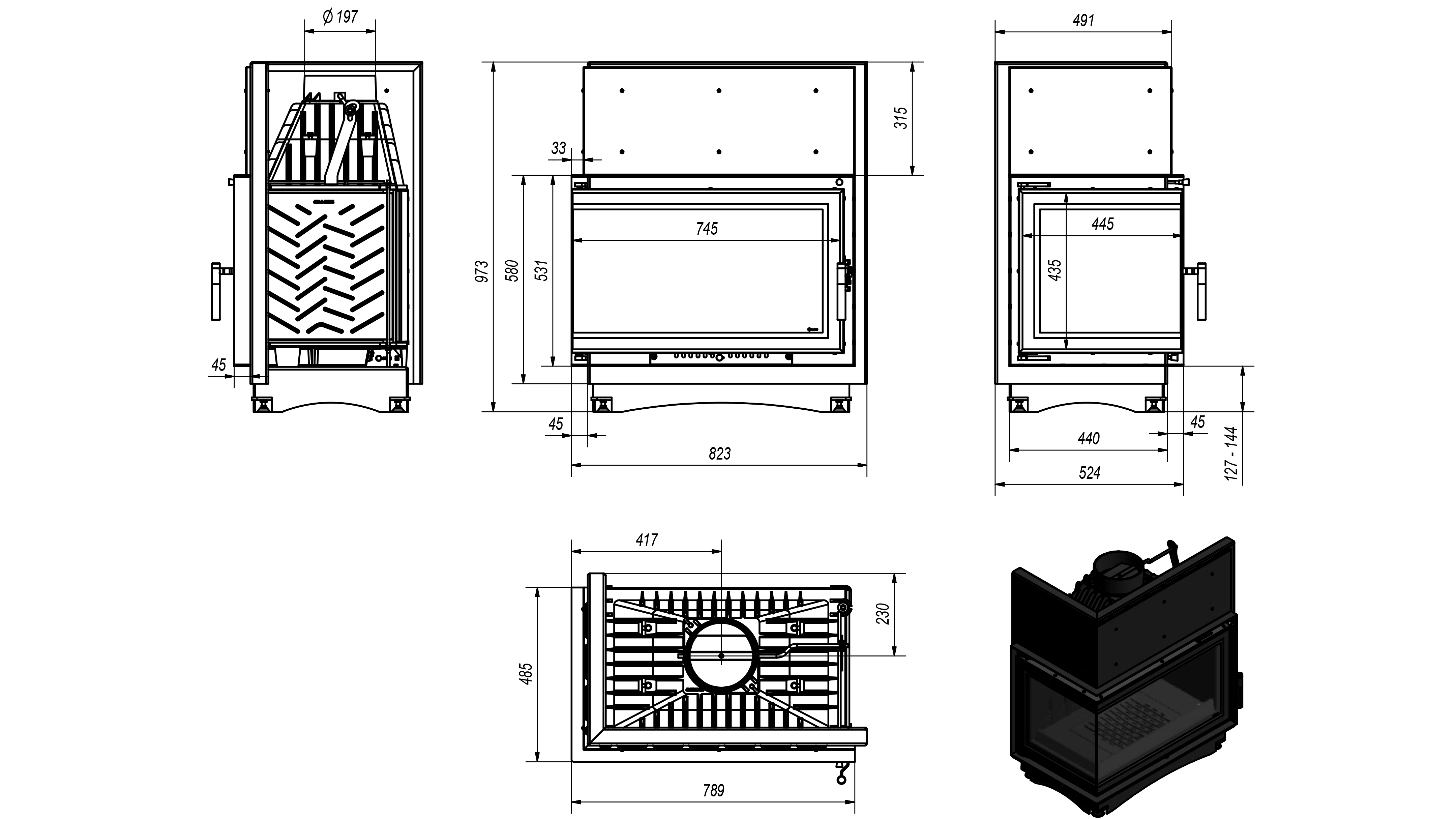 KOMINEK POWIETRZNY ŻELIWNY OLIWIA LEWY BS 16 KW Ø 200 DECO