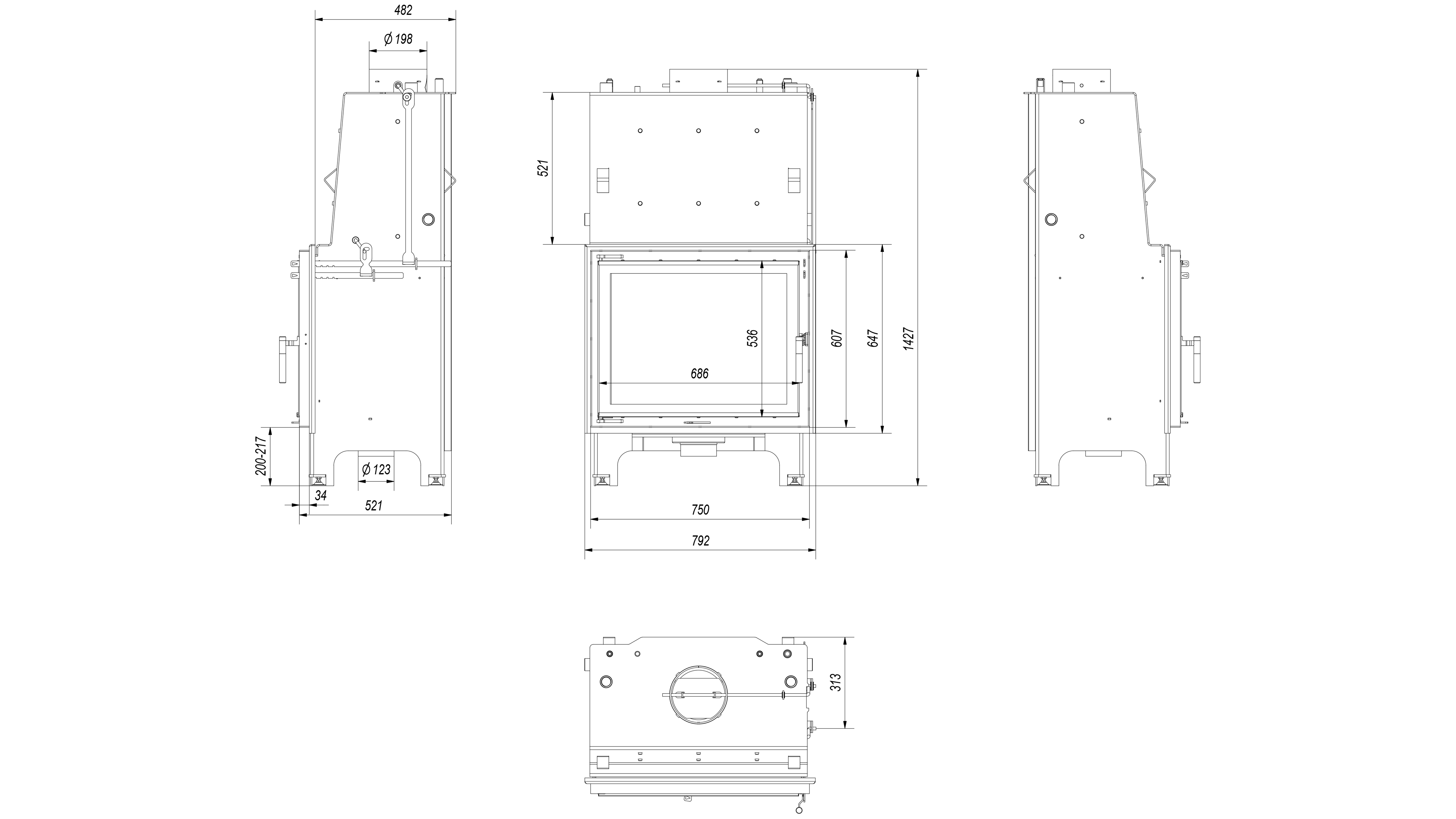Wkład bezrusztowy, występuje w nim tzw. dopalanie na popiele, co oznacza, że opał wypala się na drobny popiół, którego pozostaje minimalna ilość. Uzyskana w ten sposób energia cieplna z drewna zostaje maksymalnie wykorzystana.