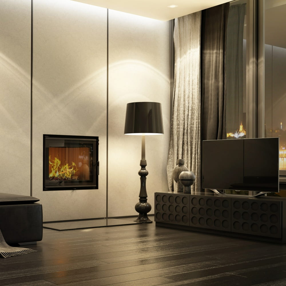 Kominek w wersji z podwójną szybą, która wpływa na efektywniejsze przekazywanie ciepła do pomieszczenia, a także zapewnia mniejsze zabrudzenie szyby kominkowej.