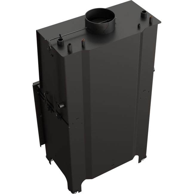 Wkład AQUARIO to urządzenie z płaszczem wodnym, posiadające korpus zbudowany z podwójnych, stalowych ścian. Przestrzeń, pomiędzy nimi wypełnia woda, która odbiera ciepło i przekazuje je do instalacji grzewczej. Kominek charakteryzuje się efektywniejszym spalaniem i dłuższym utrzymywaniem temperatury, dzięki wyłożeniu komory spalania TERMOTEC - materiałem akumulującym ciepło, który podwyższa temperaturę w palenisku. Zwiększona powierzchnia wymiany ciepła we wkładzie następuje dzięki wbudowanym płomieniówkom i wysokiemu czopuchowi. Bardziej ekologiczne spalanie dzięki systemowi dwóch deflektorów, których użycie wydłuża drogę spalin.