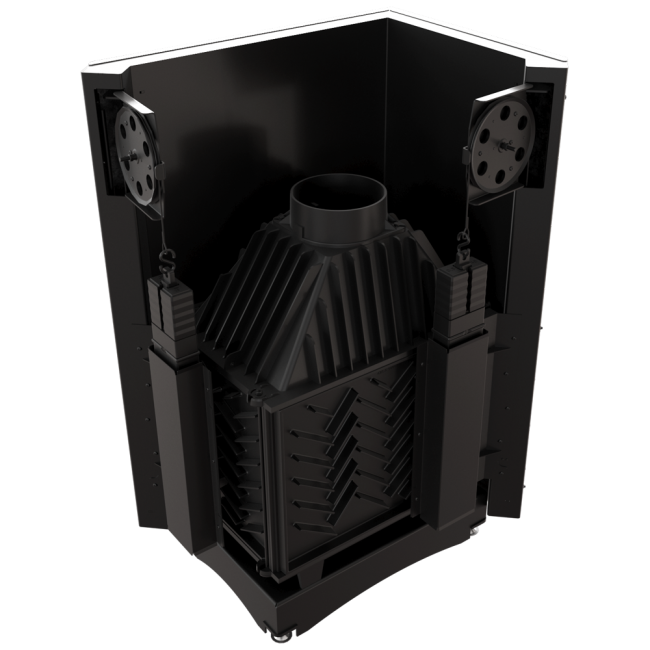Podwójny system otwierania drzwi do góry (GILOTYNA) i do boku. Podnoszone i opuszczane drzwi ułatwiają załadunek drewna, a mechanizm umożliwiający boczne otwarcie pozwoli na sprawniejsze czyszczenie szyby.