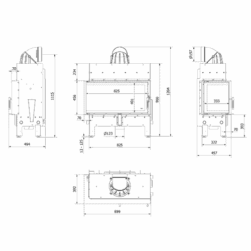 Kominek powietrzny stalowy FLOKI L lewy 12 kW Ø 200