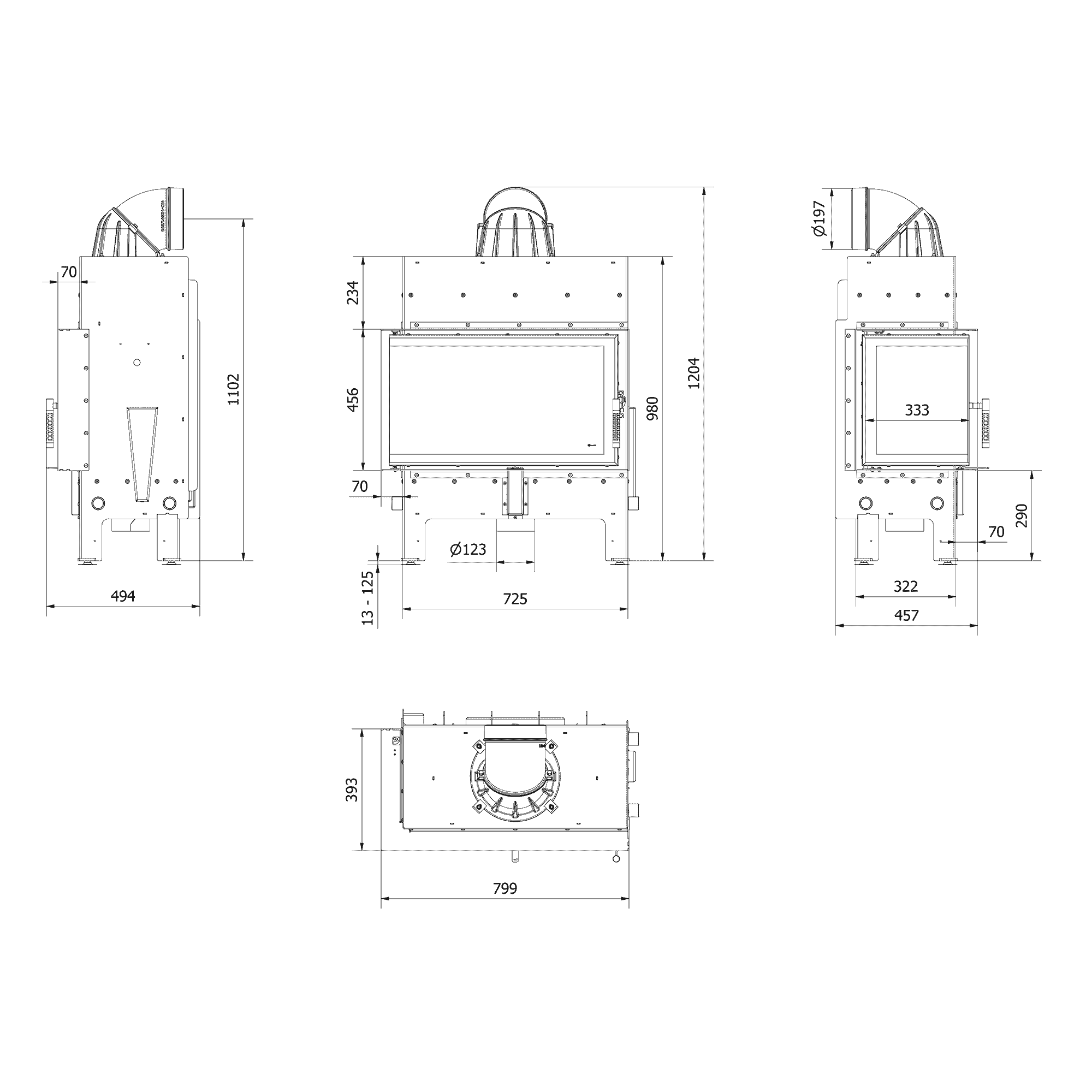 Kominek powietrzny stalowy FLOKI M lewy 10 kW Ø 200