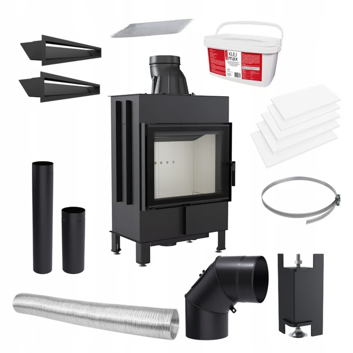 Stalowy wkład kominkowy LUCY 12kW z wyłożeniem TERMOTEC i ozdobną szybą typu GLASS + ZESTAW MONTAŻOWY