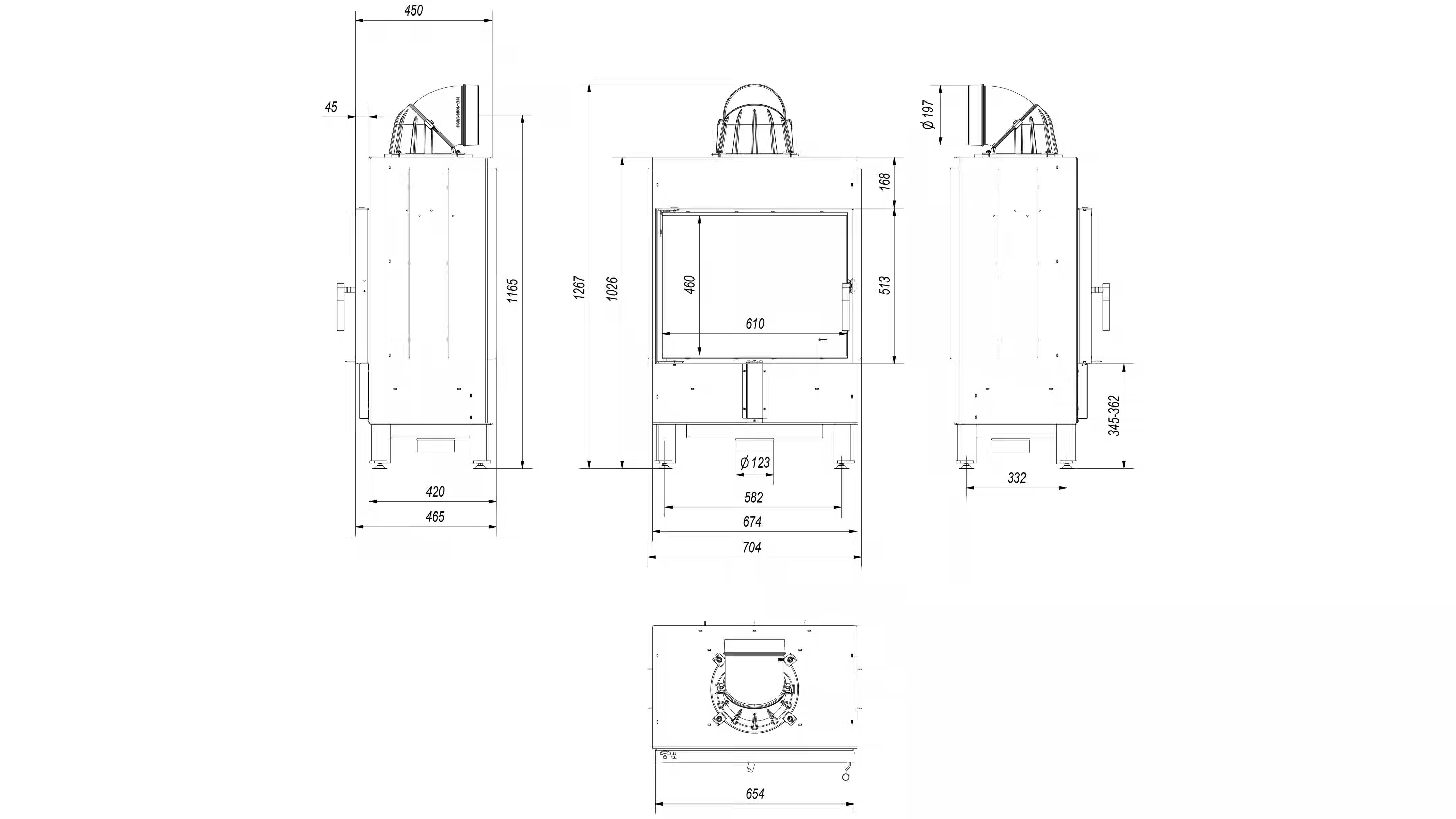 Kominek powietrzny stalowy LUCY 12 kW Ø 200 zestaw montażowy