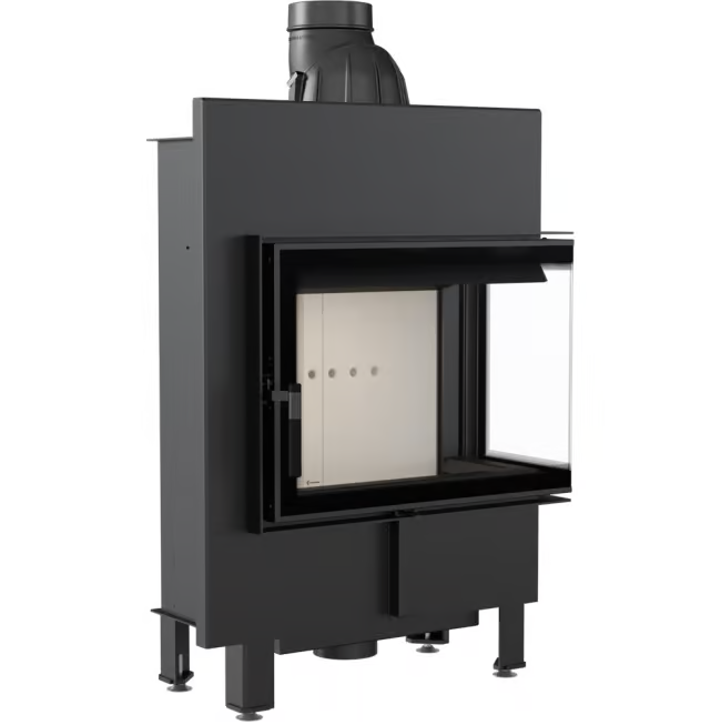 Wkład o ciekawym kształcie z bocznym przeszkleniem, z płytką komorą spalania, dzięki czemu doskonale sprawdzi się w salonach o niewielkiej powierzchni oraz małym zapotrzebowaniu na moc grzewczą. Dzięki dwustronnej wizji ognia i delikatnej ramie frontowej doskonale wpisuje się w stylistykę nowoczesnych wnętrz. Nowoczesne rozwiązania zastosowane w kominku gwarantują oszczędność energii i sprawiają, że obsługa i czyszczenie urządzenia są bezproblemowe.