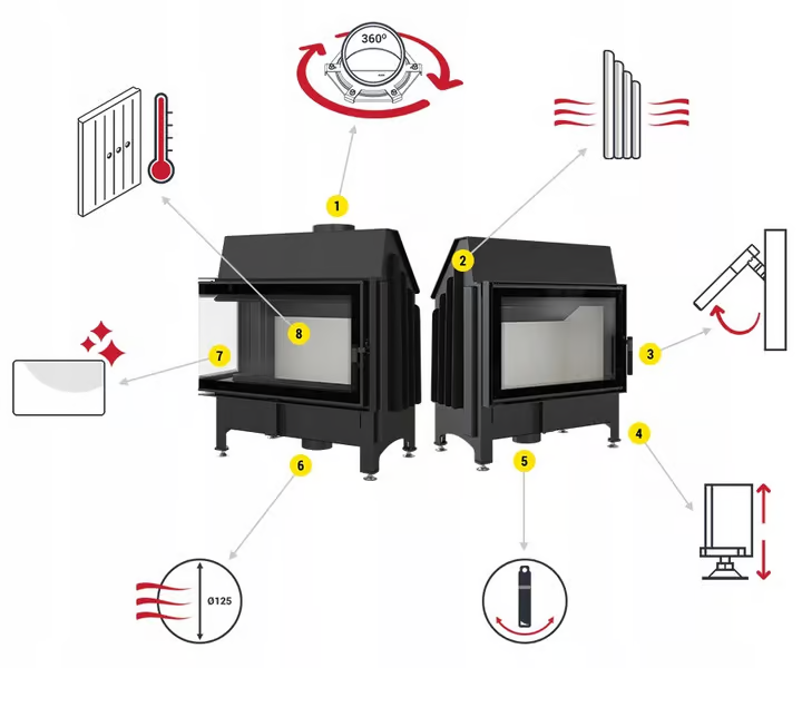 • posiada szybę żaroodporną wytrzymującą temperaturę do 660°C