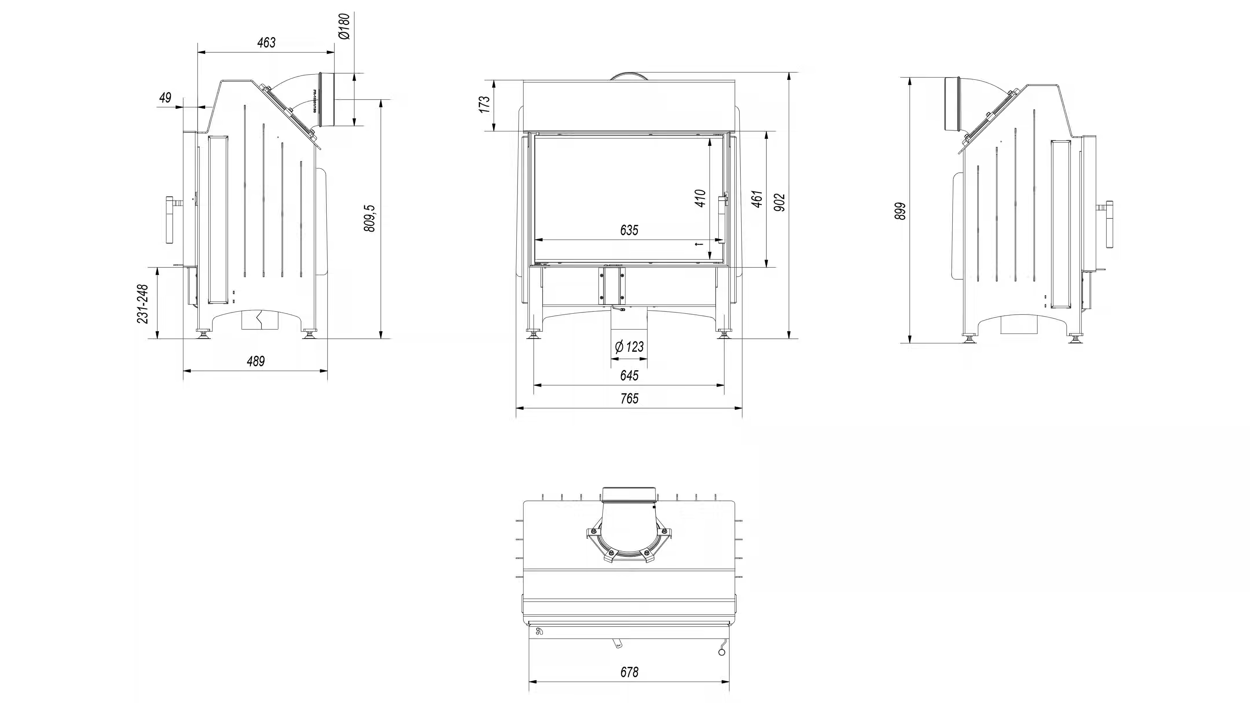 Wkład kominkowy ZIBI DECO z ozdobną szybą, dolotem powietrza, spełnia kryteria EKOPROJEKTU + ZESTAW MONTAŻOWY