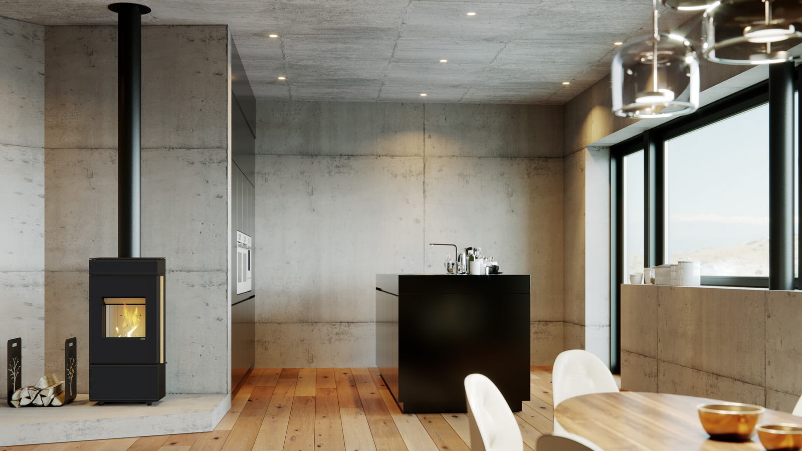 • Okładziny paleniska z trwałego Ceramitonu w dwóch odcieniach: jasny i czarny