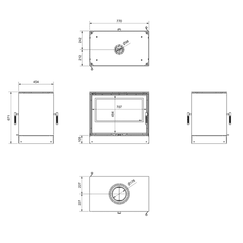 Kominek wolnostojący tunelowy KRATKI KARI 80 12 kW Ø 180 z domykaniem, czarny termotec