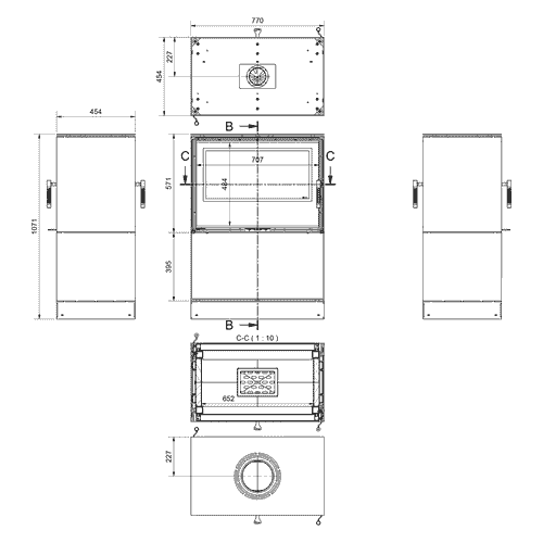 - żeliwny ruszt i stalowy popielnik ułatwiające codzienne użytkowanie,