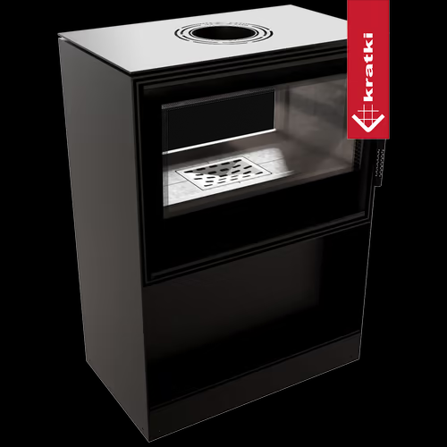 Kominek wolnostojący tunelowy KRATKI KARI 80 12 kW Ø 180 z półką na drewno, czarny termotec