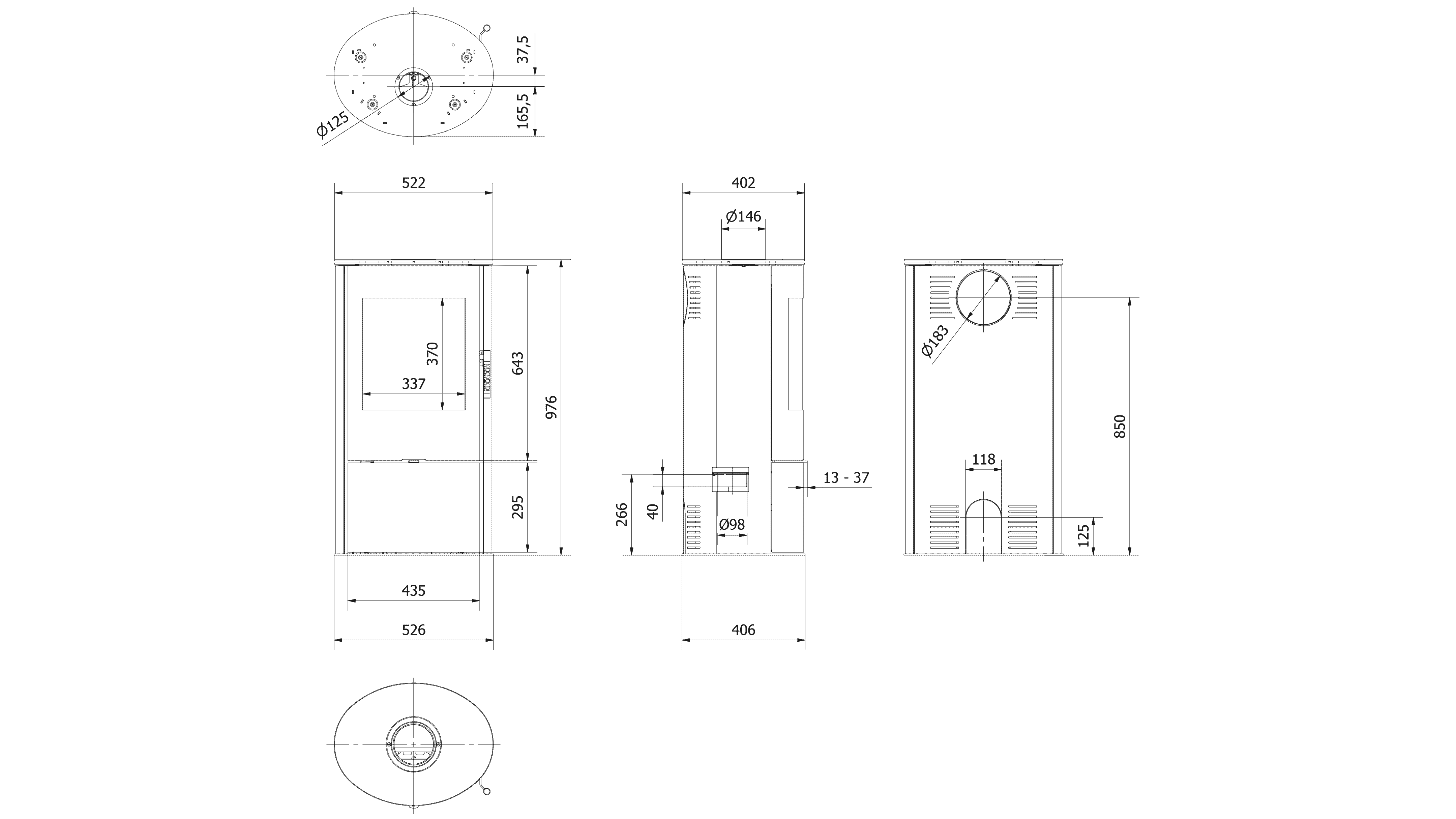 koza piec wolnostojący KOZA/AB/ROLLO + akcesoria