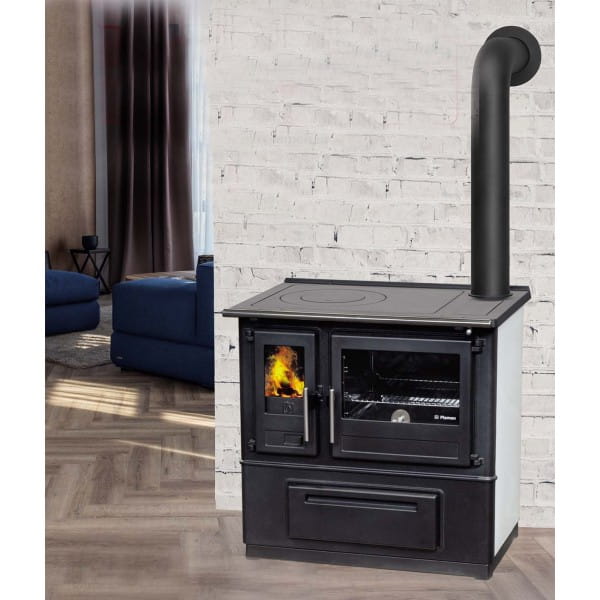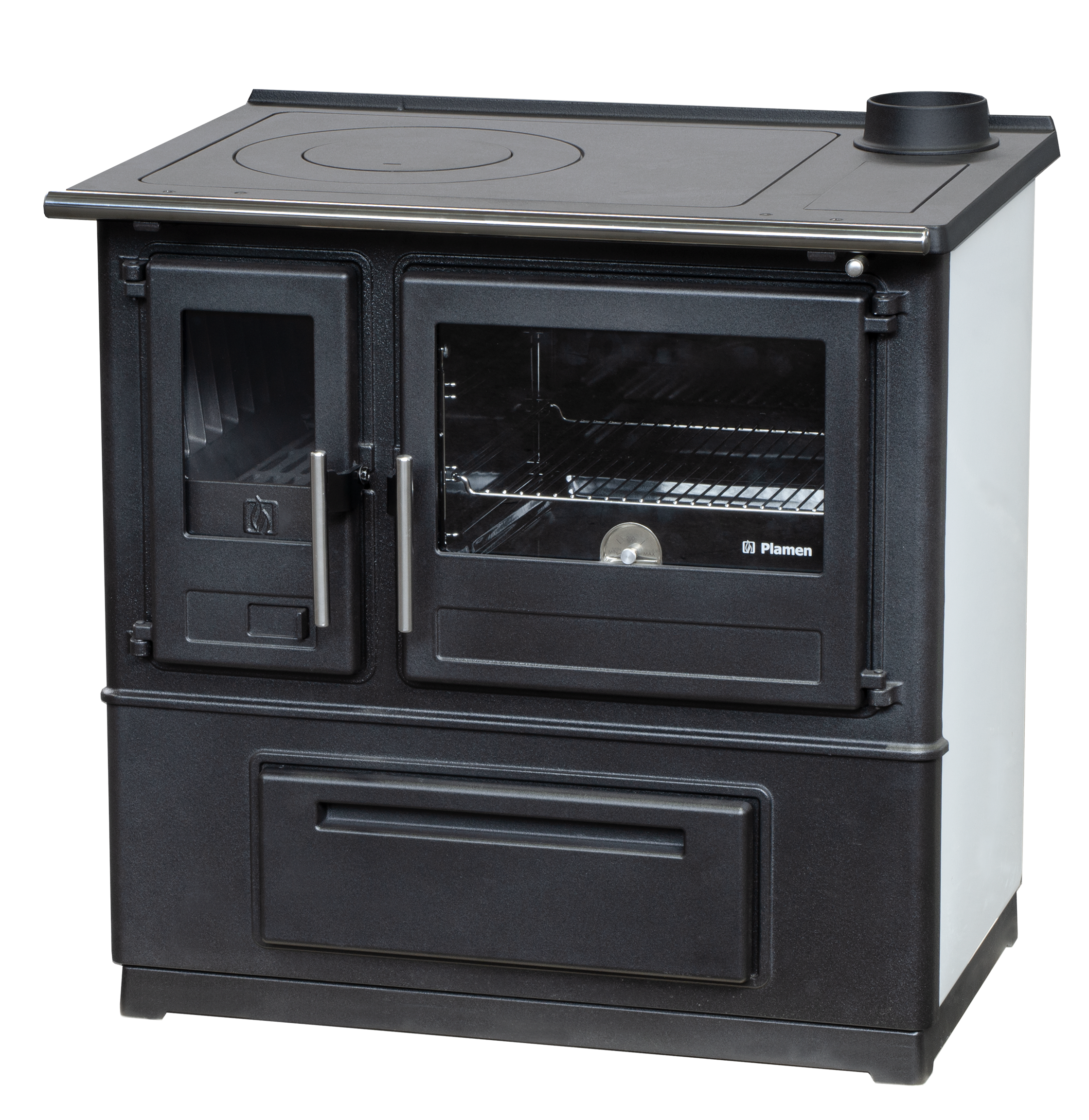 Kuchnia Slavonac N prawa z piekarnikiem na drewno drzew liściastych. Piec kuchenny o nominalnej mocy 8 kW jest jedną kilku kuchenek firmy PLAMEN, które mogą w idealny sposób zaspokoić Państwa potrzeby. Skonstruowana jest tak, aby zaspokajać podstawowe potrzeby grzewcze jednego rodzinnego domu lub mieszkania. Kuchenka przeznaczona jest do gotowania, pieczenia, smażenia i grzania, jako piec stacjonarny, służy do ogrzewania pomieszczenia. SLAVONAC N łączy tradycyjne wartości z nowoczesną technologią. Nowa konstrukcja kuchenki na drewno z wieloletnią tradycją w przygotowaniu potraw zapewni wymagane bezpieczeństwo, ciepło i trwałość. Najwyższa jakość, wysoka wydajność i nowoczesny design sprawiają, że ten produkt to właściwy wybór dla Twojego domu. Możliwość podłączenia do komina od góry i od tyłu.