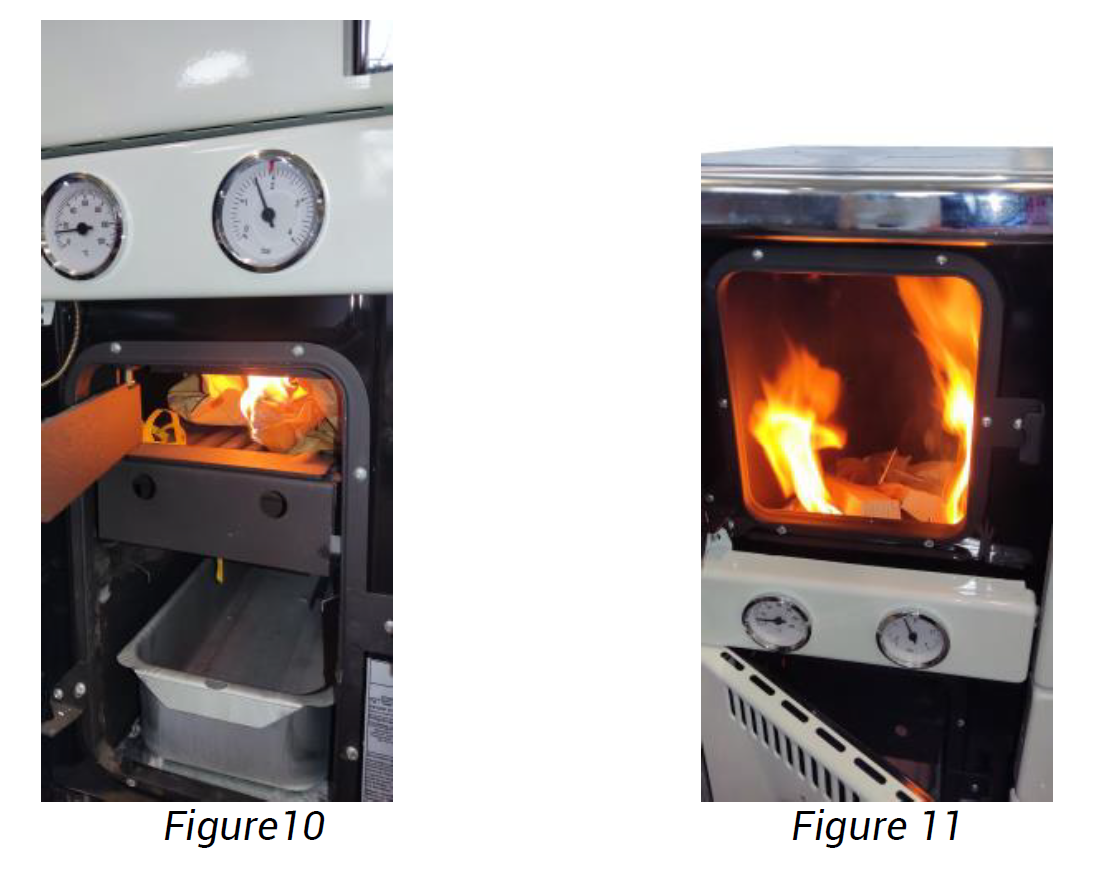 3. Drzwiczki komory spalania - posiadające specjalną budowę o właściwościach przeciwpożarowych. Drzwiczki wyposażone są w specjalny uszczelniający sznur żaroodporny podnoszący dokładność uszczelnienia drzwiczek. Same drzwiczki zbudowane są z dwóch warstw: zewnętrznej stalowej emaliowanej oraz wewnętrznej dokręcanej warstwy grubego ognioodpornego żeliwa chroniącego drzwiczki przed nadmiernym nagrzaniem. Drzwi wyposażone są w system zamykania dociskowego gwarantującego szczelne i bezpieczne zamknięcie.